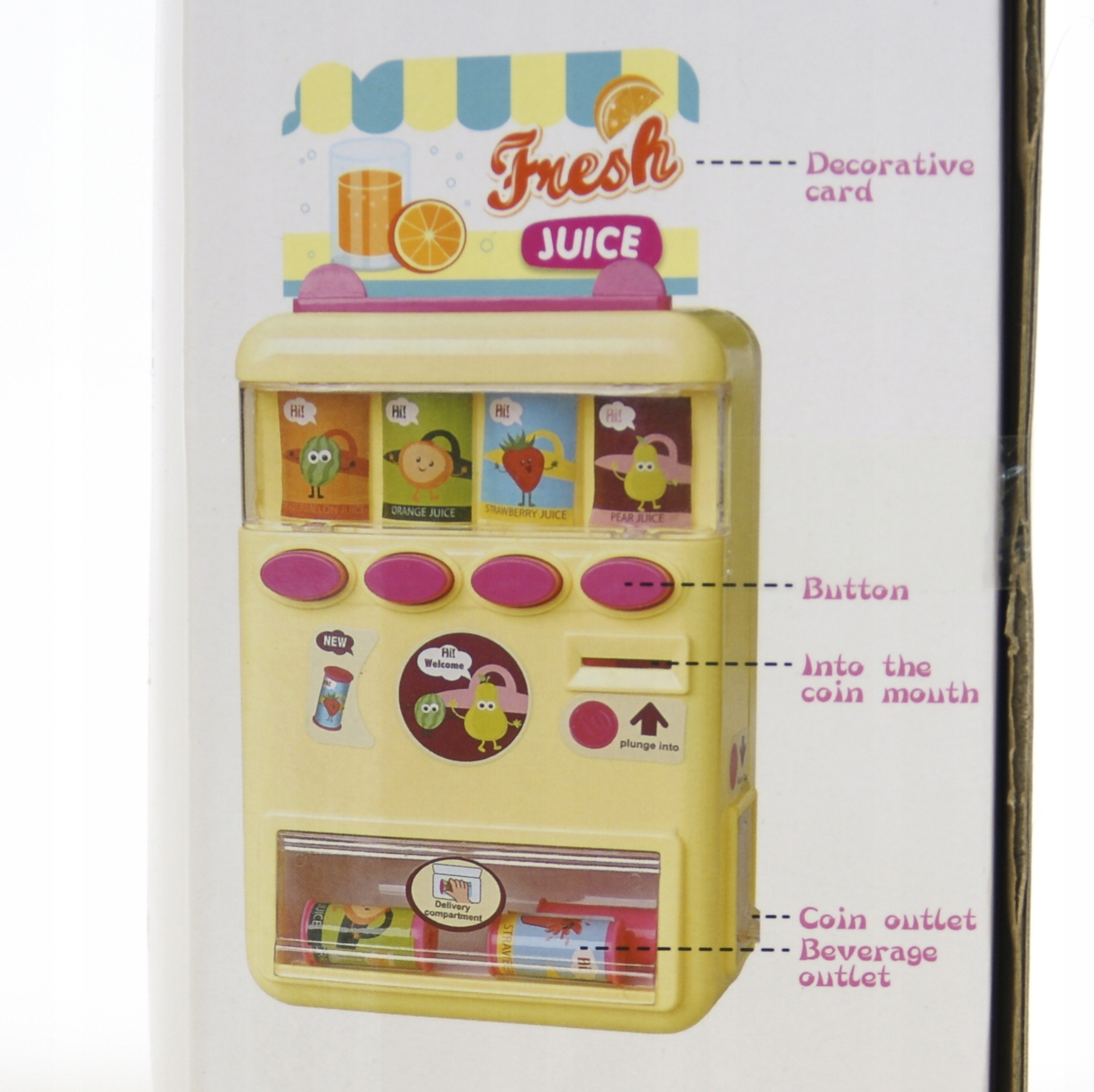 Lodówka w formie automatu sprzedażowego pozwoli zakupić ulubiony napój w puszce o każdej porze. Zabawka nie wymaga baterii do działania - wystarczy załadować maszynę towarem, wrzucić monetę i wybrać ulubiony produkt - moneta zostanie pobrana w formie zapłaty, a w komorze pojawi się puszka z napojem lub jedzeniem.