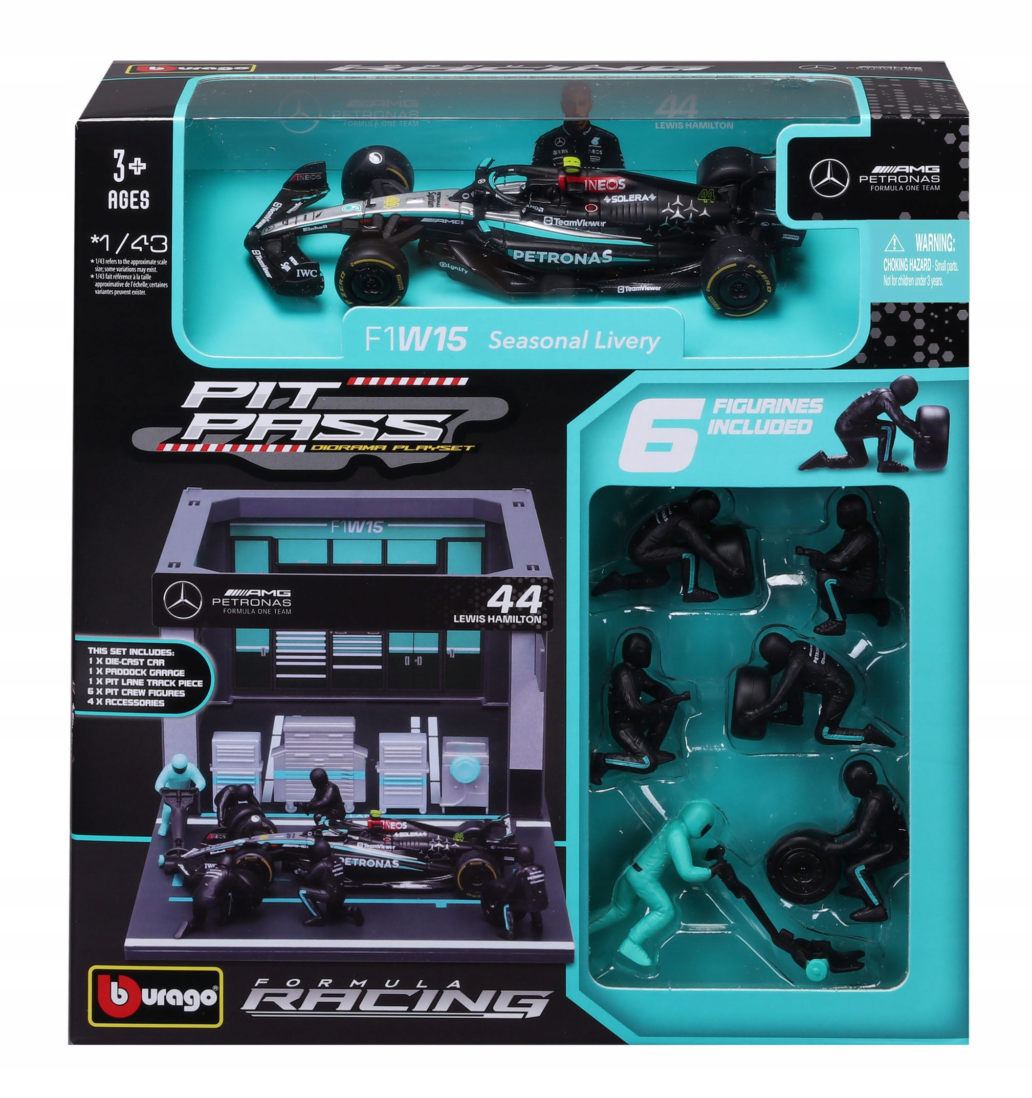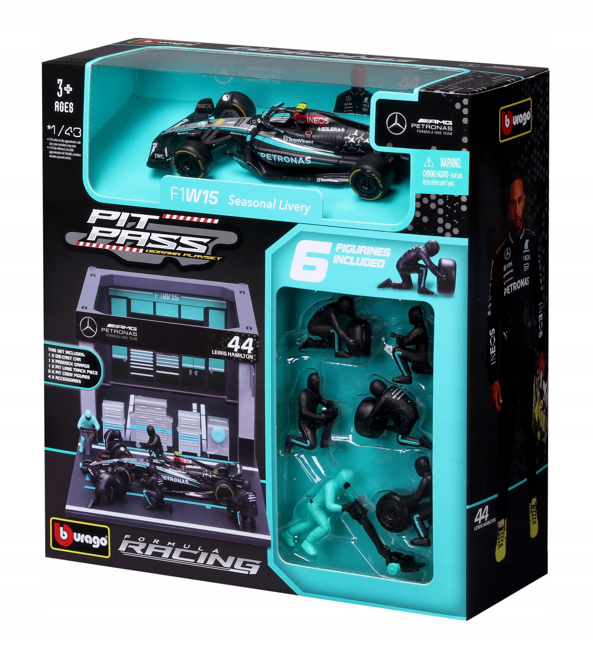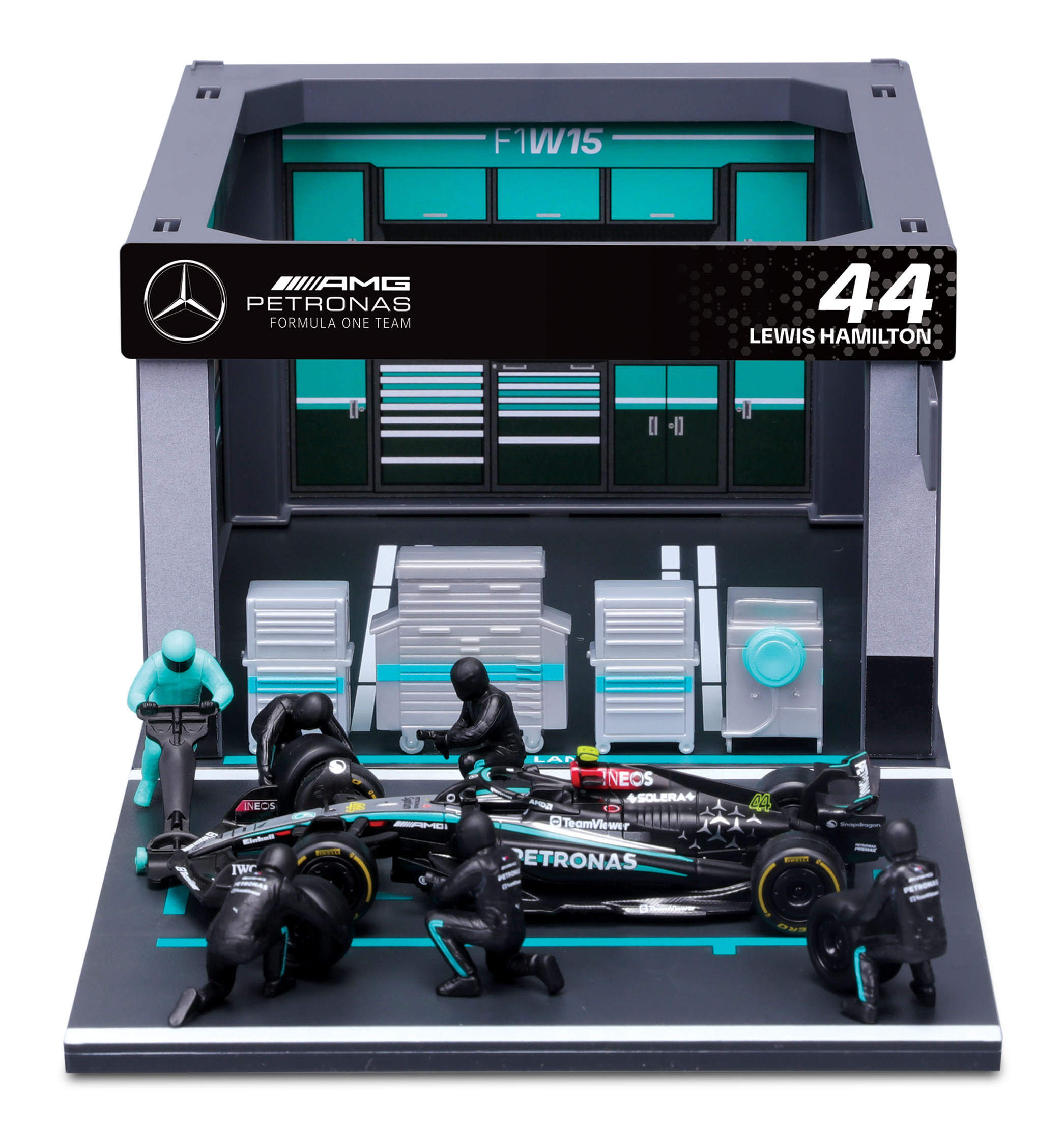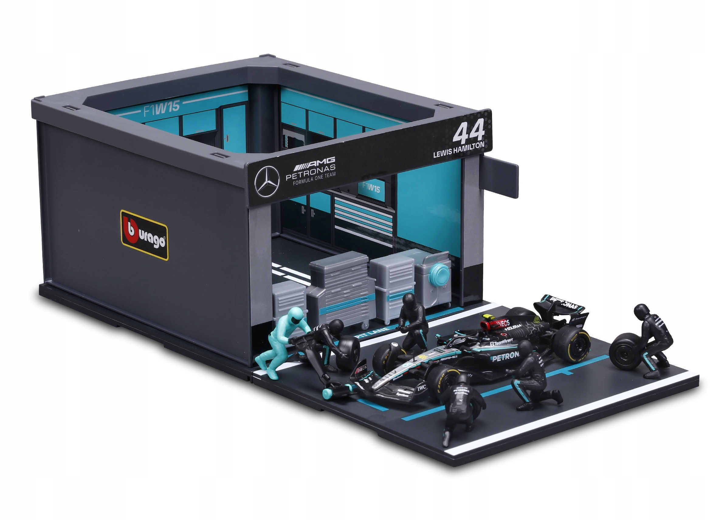 BOKS GARAŻOWY PIT LANE BOLID F1 Mercedes AMG W15 Hamilton BBURAGO 18-38452