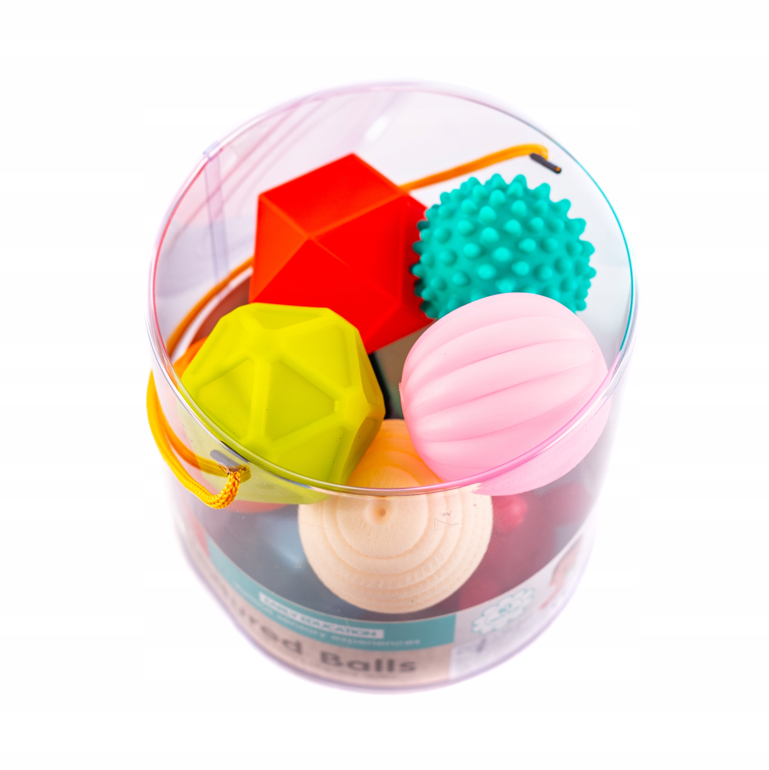 Zestaw zawiera 10 piłeczek sensorycznych, to prosta zabawka do wielu zastosowań - do zabawy jak zwykłą piłeczką, jako zabawka sensoryczna dzięki wypustkom lub jako zabawka do kąpieli.