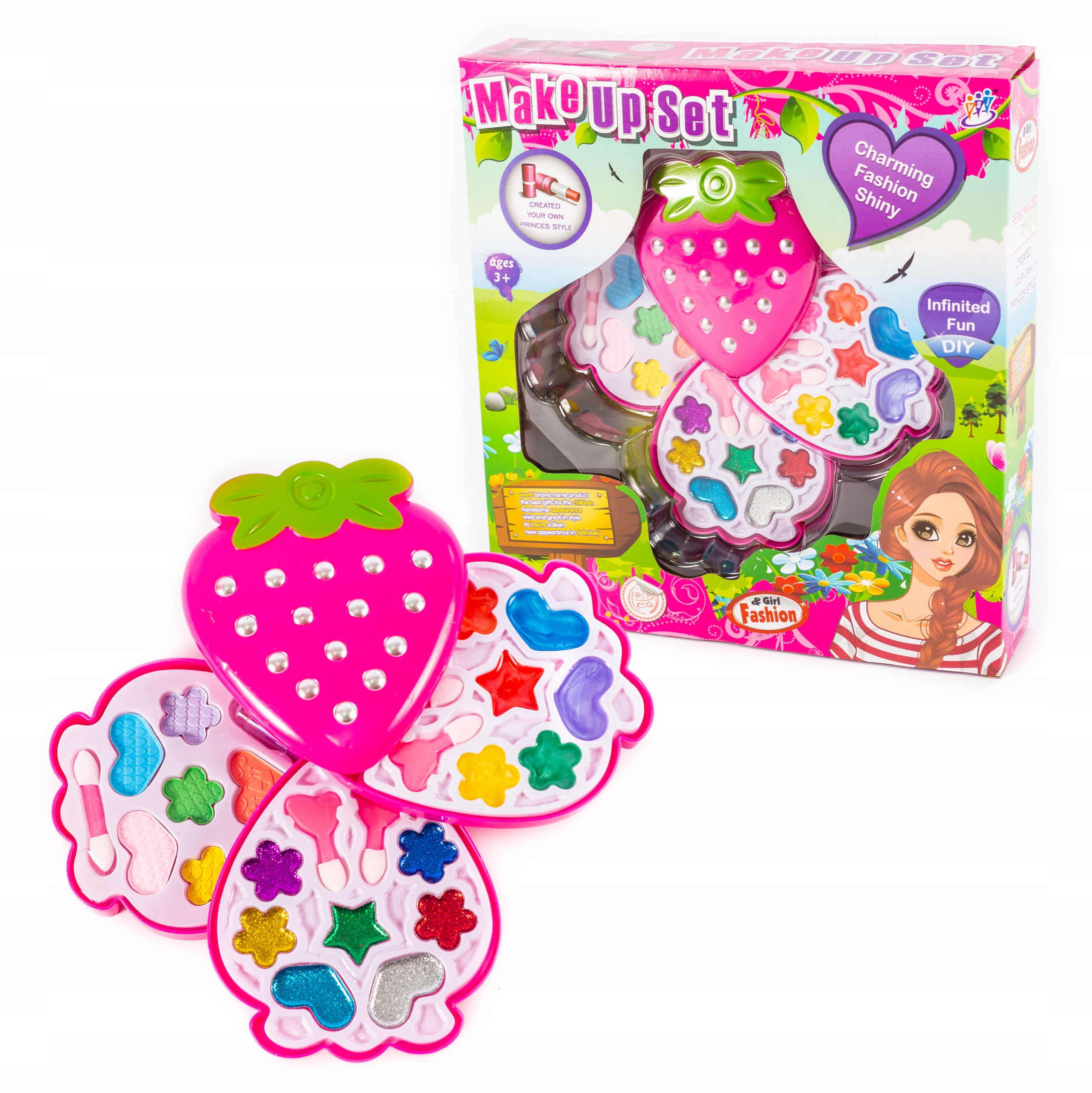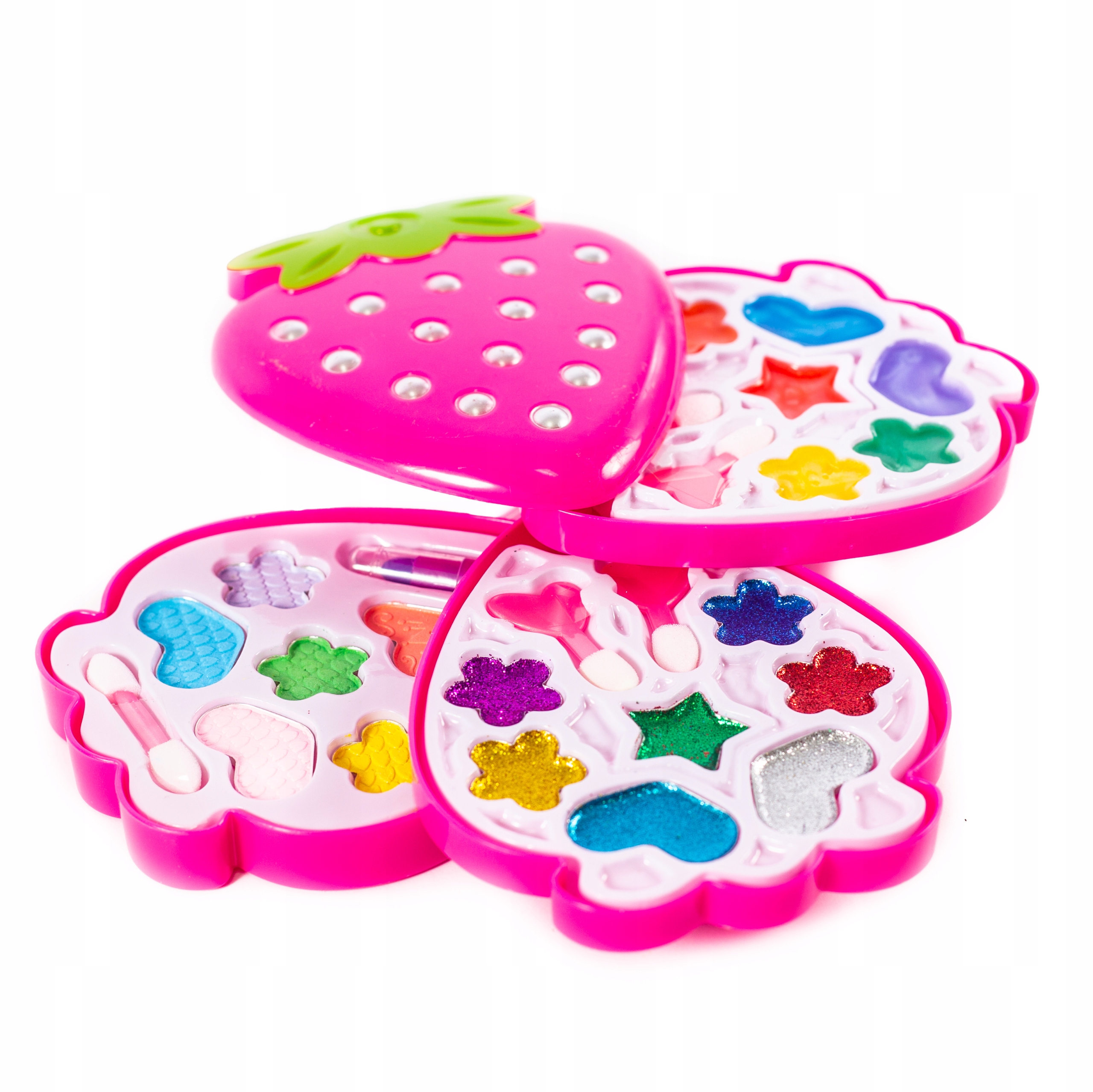 W zestawie znajduje się wszystko to czego potrzebuje prawdziwa kobieta: malowidła, cienie do powiek, szminki oraz wiele innych akcesoriów.