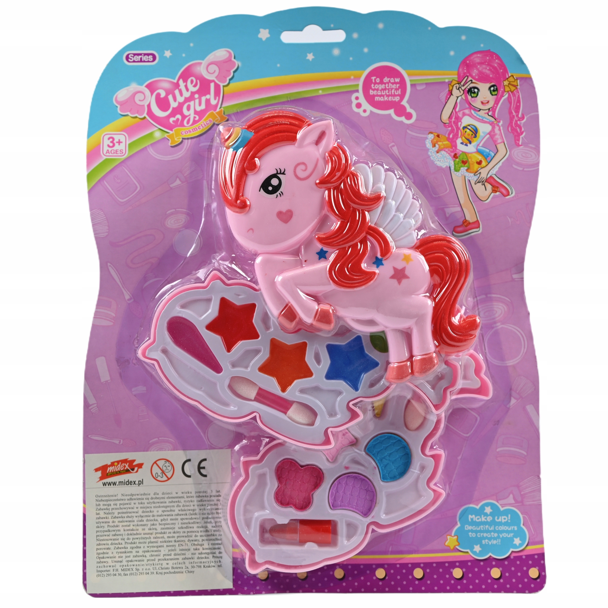 Wspaniały zestaw do malowania dla każdej małej dziewczynki. Kosmetyki zamknięte są w kolorowym, zamykanym pudełku.