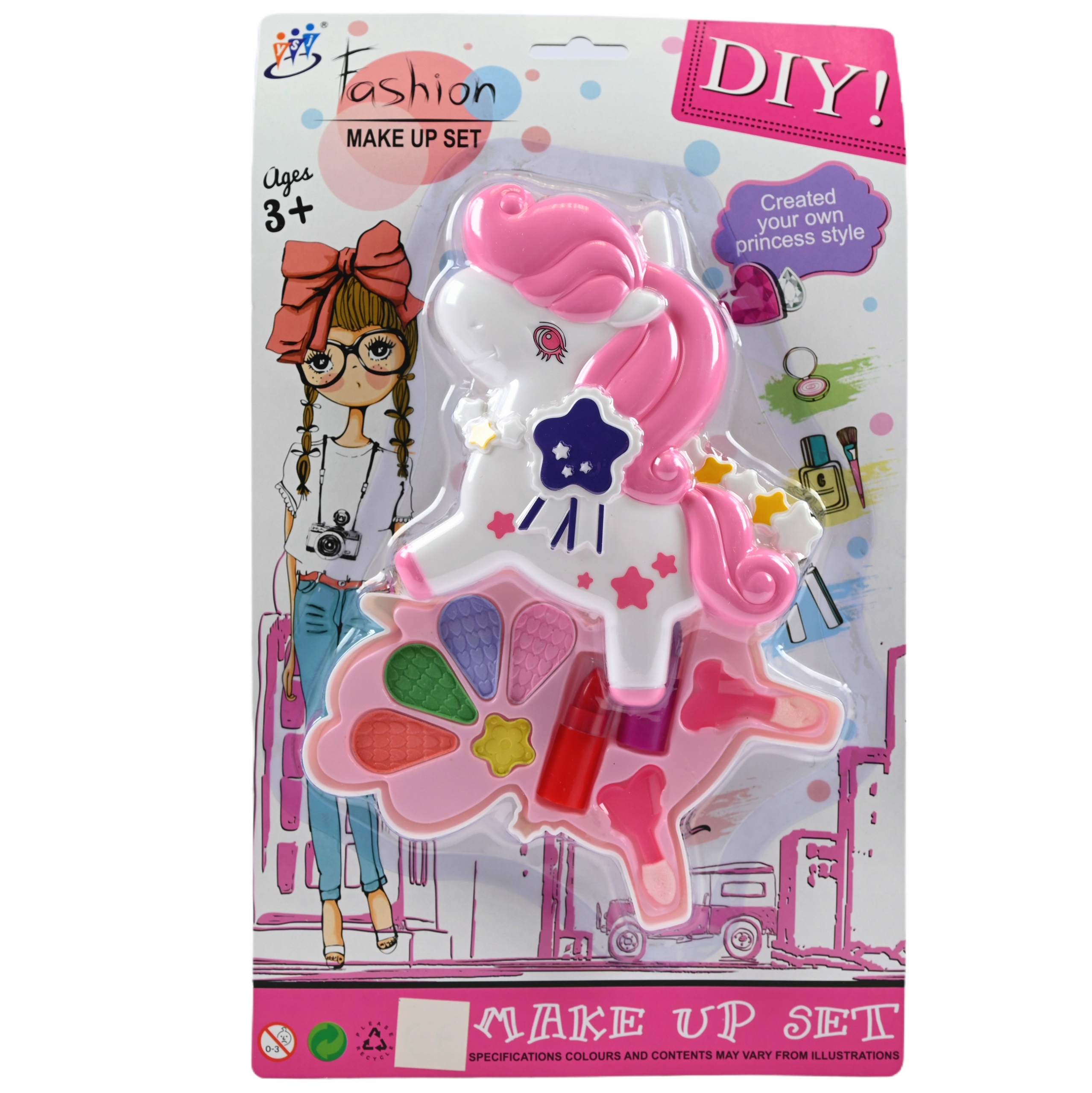 Wspaniały zestaw do malowania dla każdej małej dziewczynki. Kosmetyki zamknięte są w kolorowym, zamykanym pudełku.